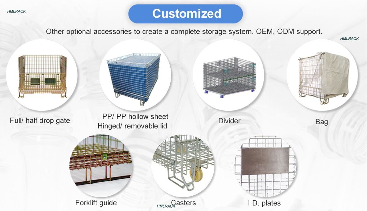 Reka bentuk yang tersedia | Tudung atas/panduan forklift/pembahagi/roda/rak dawai | ||||